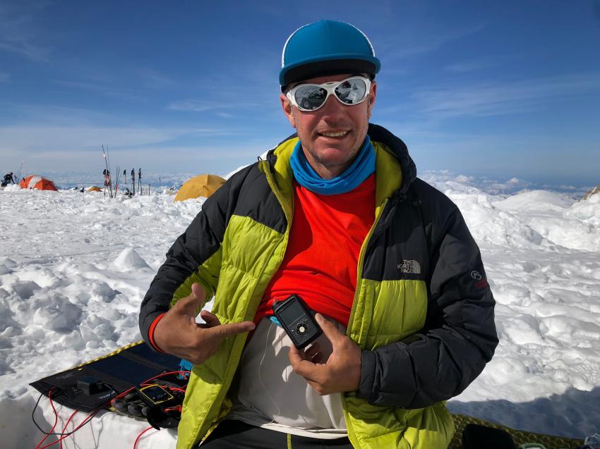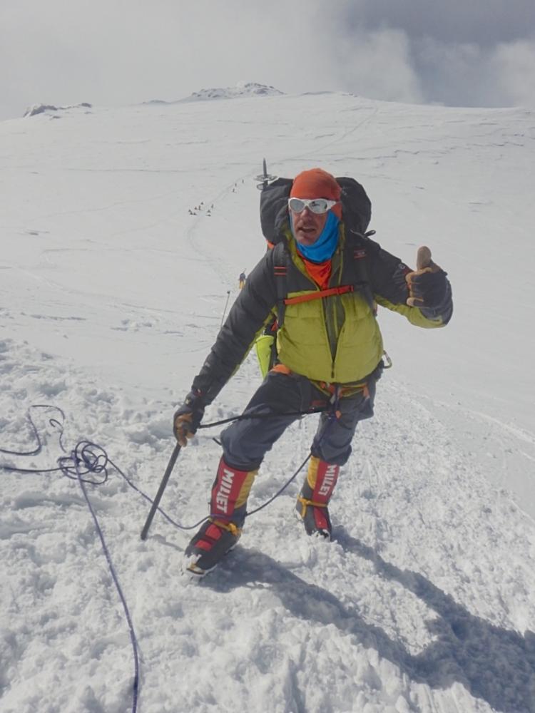 The expedition progressed onward and kept a steady pace. Layers on, Layers off. Dancing around crevasses in zero visibility. Caching food made our sleds much lighter. We seemed to be in sink with the weather Gods as they granted the Bicksler7 expedition with a beautiful Summit day on Friday June 8th. Our summit was filled with Joy and amazing views. Tom Bicksler the T1D had made the summit at 20,310elv..