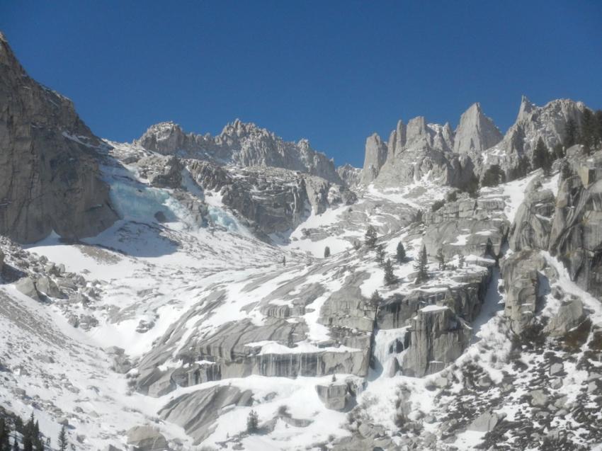 Mt Whitney, another favorite place of ours to get some good winter training in! This year was great for Ice Climbing. We did not get our usual snow levels this year which left many Ice falls exposed and ready to climb. We made it up the Mountaineers route of Whitney several times this year to climb several Alpine routes and several frozen falls. Such a great place.
